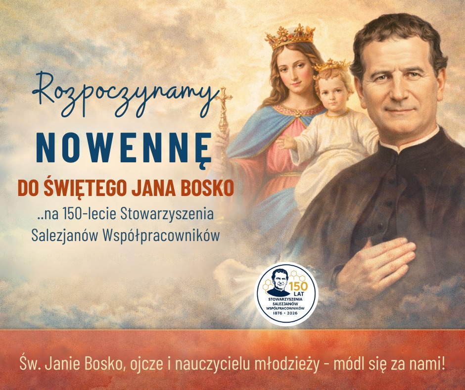Rozpoczynamy nowennę do św. Jana Bosko w wyjątkowym czasie — jubileuszu 150-lecia Stowarzyszenia Salezjanów Współpracowników. Ten rok jest dla nas nie tylko okazją do wdzięczności za przeszłość, ale przede wszystkim zaproszeniem, by na nowo ożywić to, co stanowi serce naszego powołania.